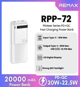 REMAX Piloteer Series 20W+22.5W Fast Charging Power Bank 20000mAh RPP-72