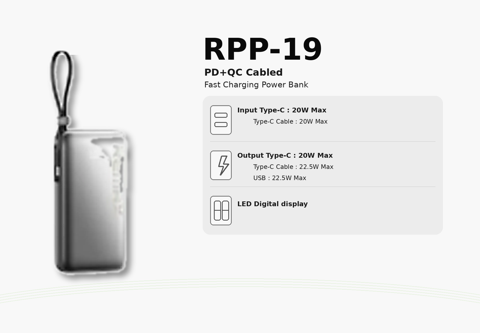 REMAX 20W+22.5W TYPE-C Fast Charging Cabled Power Bank 10000mAh RPP-19